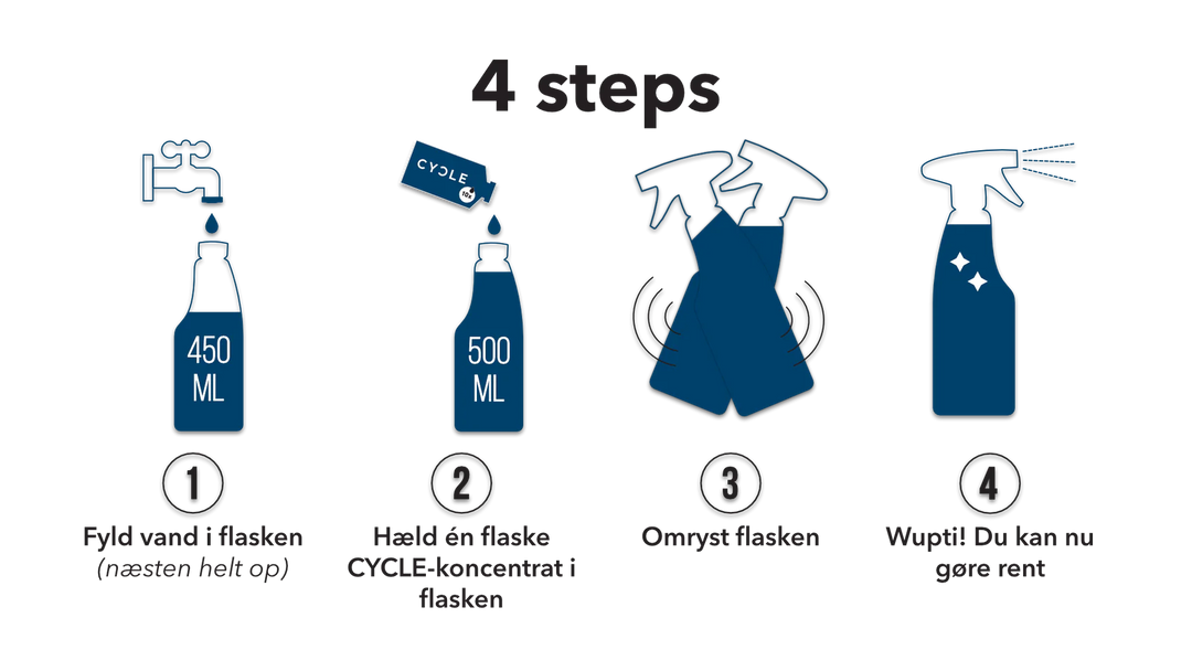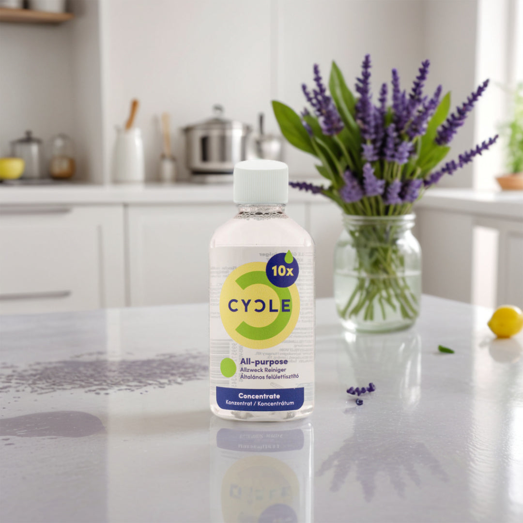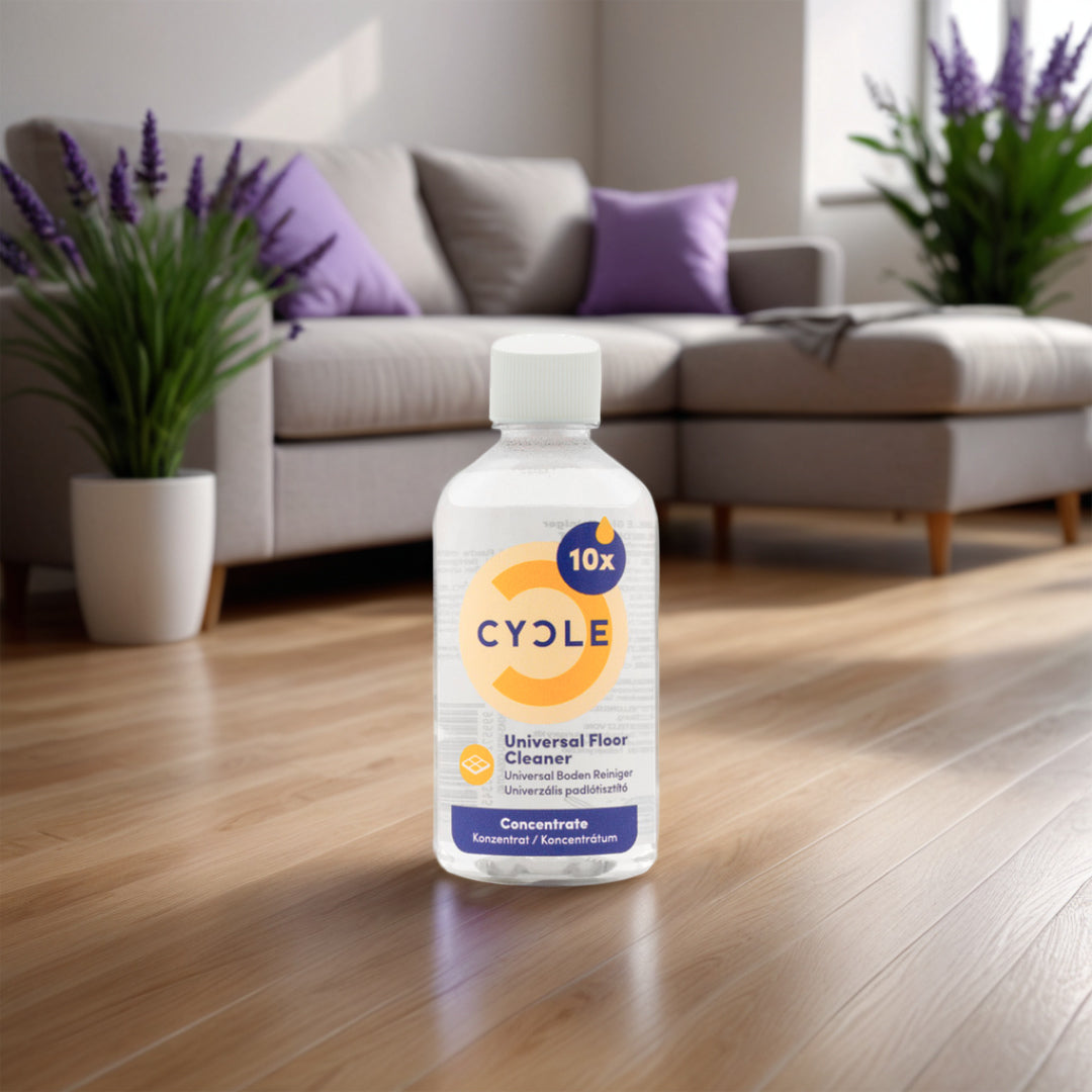 Vores CYCLE gulv-rengøringsmiddel fjerner hurtigt snavs og pletter fra alle typer gulve og hårde overflader. Perfekt til genopfyldning med CYCLE gulv-rengøring refill, så du kan holde dit hjem rent og bæredygtigt!